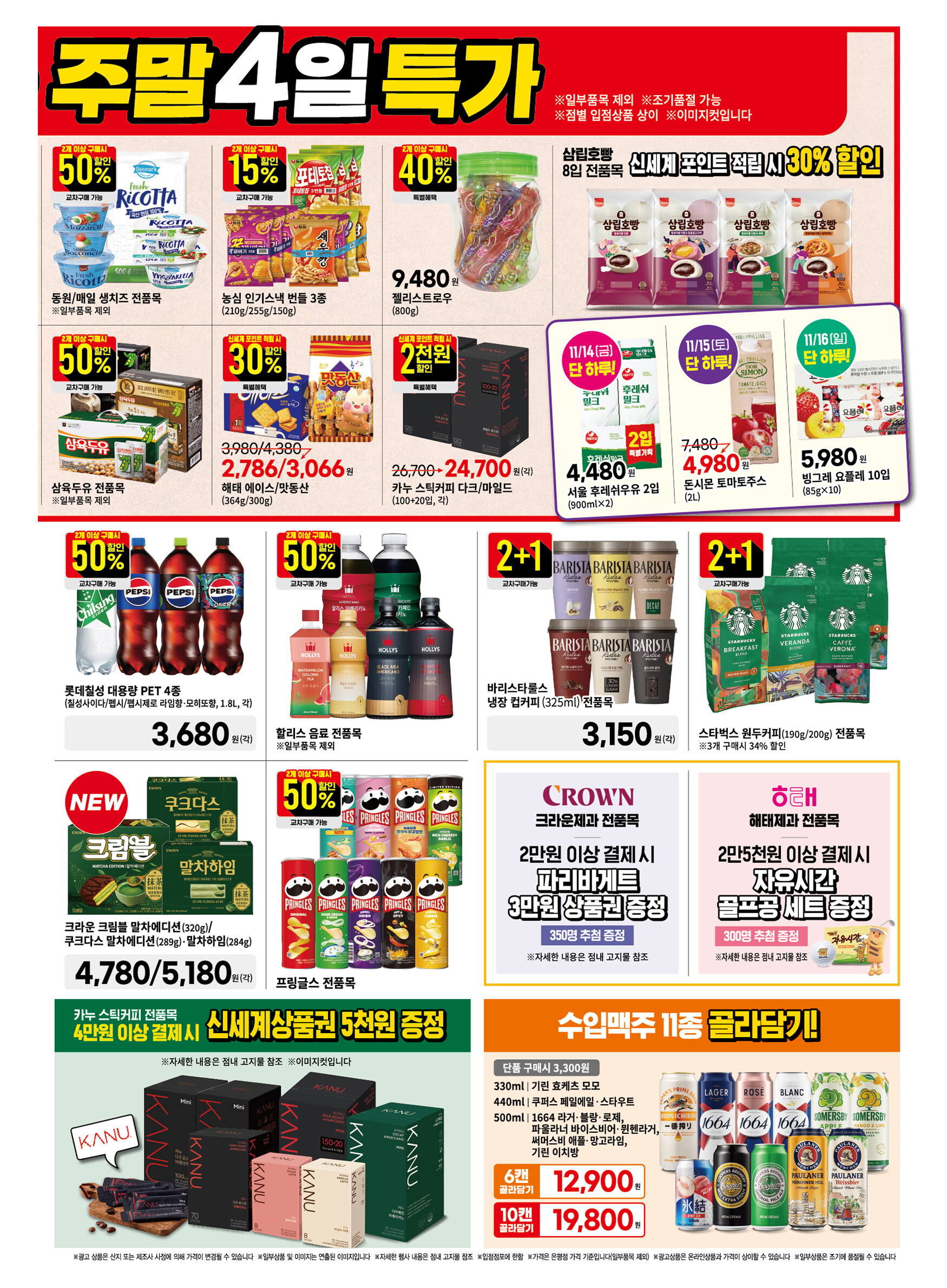 탄산류는 확실히 50% 할인을 자주 하네요.