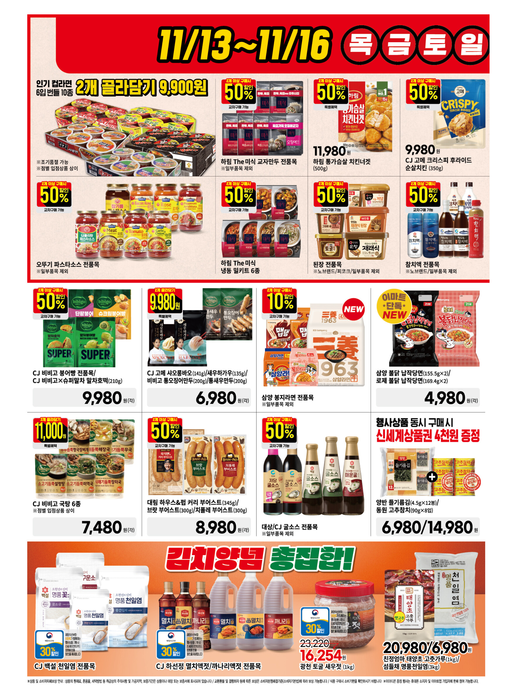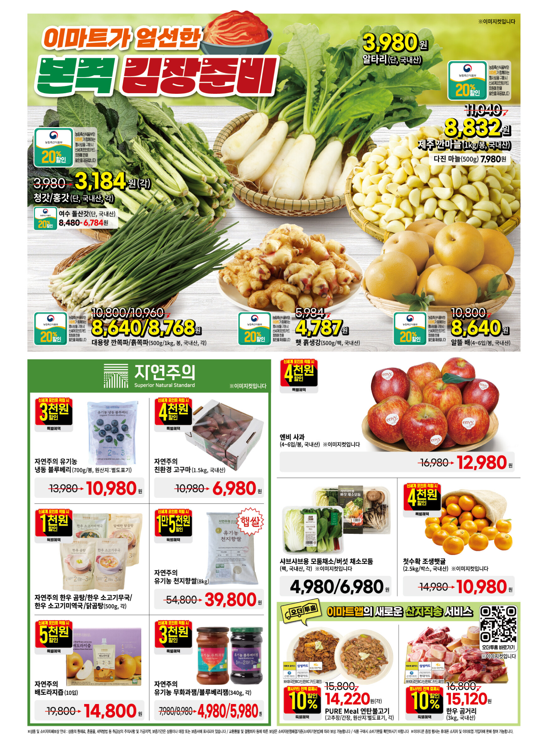김장철이라 배추, 굴, 고기 등 할인 행사가 예정되어 있네요.